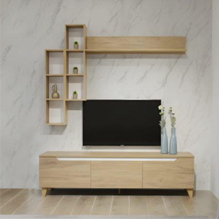 Dormez au cœur du design. Laissez-vous séduire par ce lit d'exception qui marie la chaleur d'une structure aspect bois massif à l'élégance d'une tête de lit capitonnée aux lignes géométriques. Avec son design sculptural et ses finitions soignées, il apporte une touche de luxe et de sérénité à votre chambre.