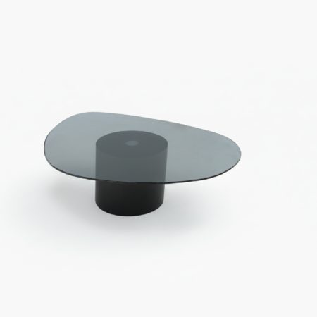 ENSEMBLE DE 2 TABLES BASSES SPOON VITRE FUME GRIS SOCLE NOIR