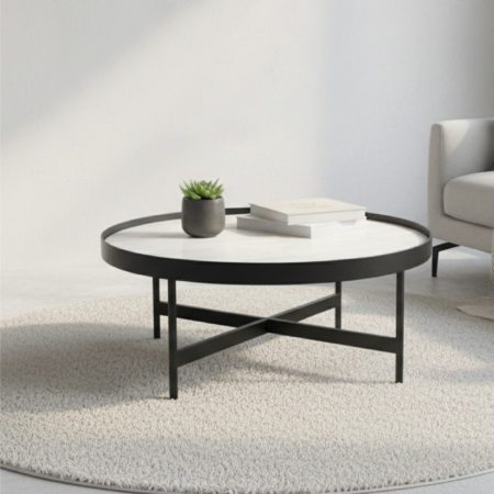Une touche de luxe minéral à votre intérieur avec la table basse Palma. Alliant un plateau rond effet marbre travertin et un socle en métal noir graphique, cette table basse est l'équilibre parfait entre modernité et authenticité. Son designépuré et son format généreux en font le point central idéal pour