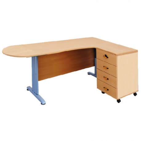 Bureau Opérateur Base “stratifié” + Extension latéral + 4 tiroirs, disponible dans les couleurs suivantes (Hetre, Blanc, Noir, Chene brut, Plum) .