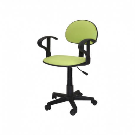 Son siège et son dossier sont rembourrés et recouverts de skaï, tandis que sa base en plastique noir, équipée de cinq roulettes, assure une grande stabilité et une mobilité aisée.