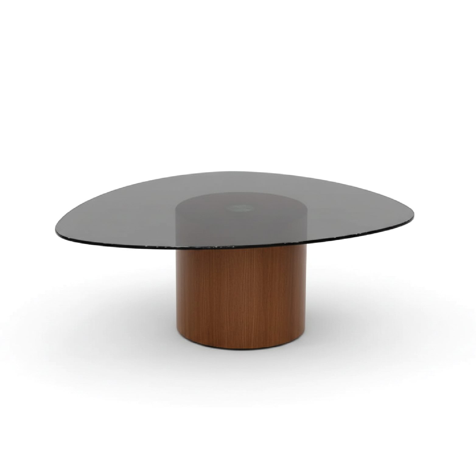 L’authenticité du noyer rencontre la transparence Le socle cylindrique est confectionné en bois massif de noyer, reconnu pour son grain riche et sa teinte chaleureuse. Le travail du bois souligne des courbes douces qui contrastent magnifiquement avec le plateau en verre fumé de sécurité. Cette alliance apporte une légèreté visuelle unique, laissant transparaître la structure artisanale du pied tout en offrant une surface de pose élégante.
