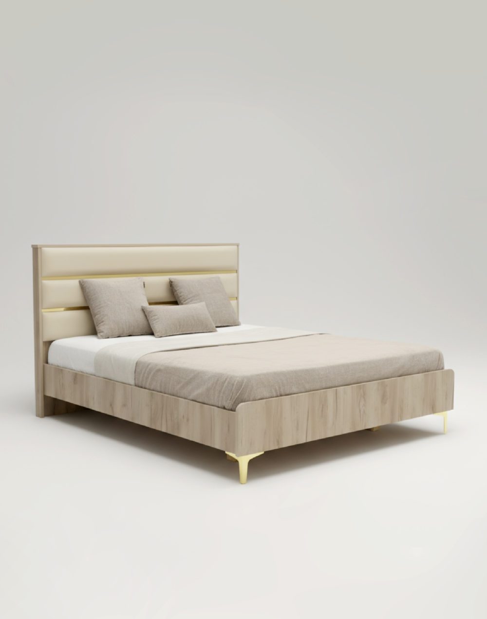 Le lit Havana séduit par son design moderne et son esthétique raffinée, mettant en valeur une finition bois clair associée à de subtiles touches dorées qui apportent une note chic et contemporaine à la chambre. Son style épuré crée une atmosphère chaleureuse et apaisante, idéale pour un espace de repos élégant.