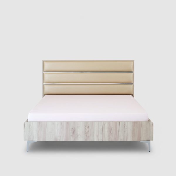 Le lit Havana séduit par son design moderne et son esthétique raffinée, mettant en valeur une finition bois clair associée à de subtiles touches dorées qui apportent une note chic et contemporaine à la chambre. Son style épuré crée une atmosphère chaleureuse et apaisante, idéale pour un espace de repos élégant.