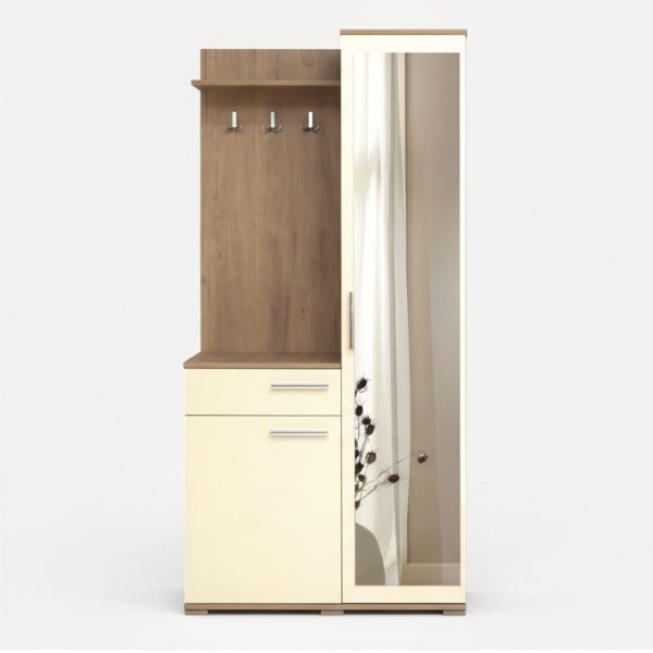 Rangement Fermé Optimisé : La partie basse dispose d’un tiroir coulissant pour vos petits objets (clés, courriers) et d’un placard spacieux, idéal pour dissimuler vos chaussures et garder une entrée dégagée.