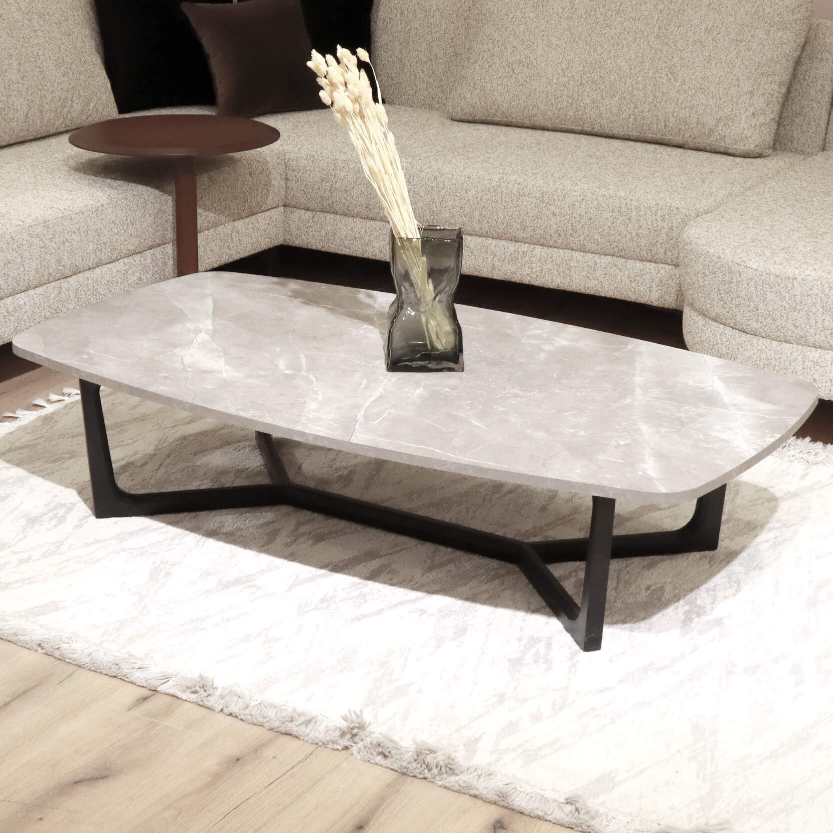 Table basse Slide effet marbre avec socle en bois massif