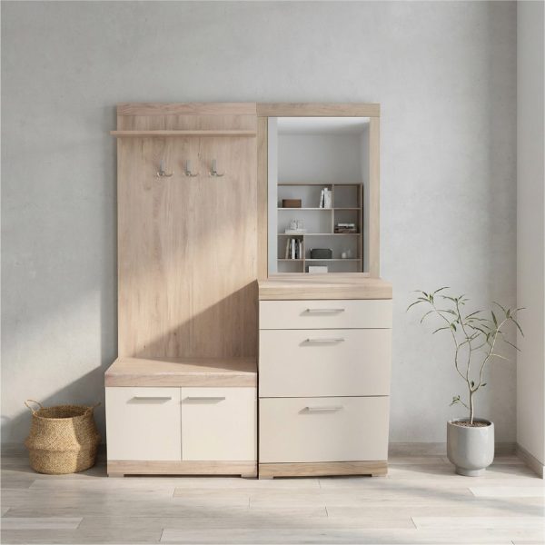 Ce porte-chaussures avec niche  au design scandinave est la solution parfaite pour une entrée ordonnée et lumineuse. Sa finition en chêne clair texturé, soulignée par une niche de rangement blanche, offre un espace de stockage généreux pour vos chaussures tout en gardant vos accessoires essentiels à portée de main. Compact et élégant, il s’intègre harmonieusement dans tous les styles d’intérieur.