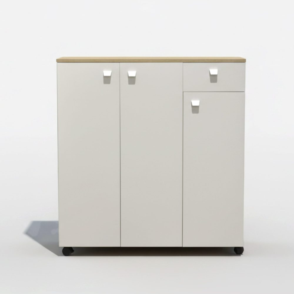 Équipé de 4 roulettes robustes, ce grand meuble se déplace sans le moindre effort. Cette caractéristique est essentielle pour faciliter le nettoyage du sol ou pour ajuster l’aménagement de votre pièce selon vos envies. Ses poignées minimalistes blanches assurent une prise en main confortable et une esthétique épurée.