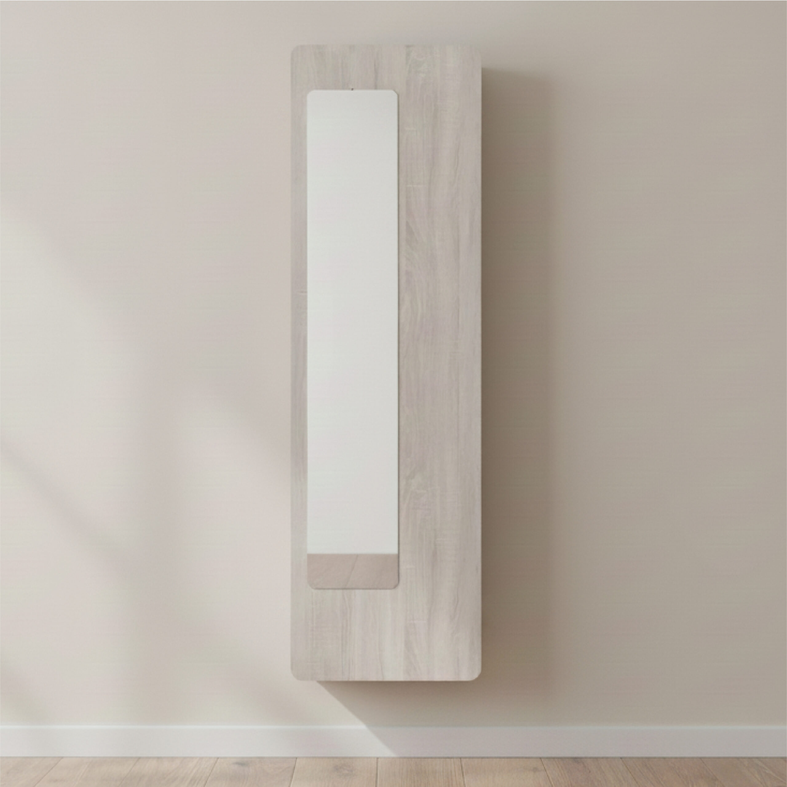Miroir Pleine Hauteur : La face avant est entièrement dédiée à un miroir vertical, idéal pour vérifier votre tenue avant de sortir tout en apportant une luminosité supplémentaire à votre entrée.