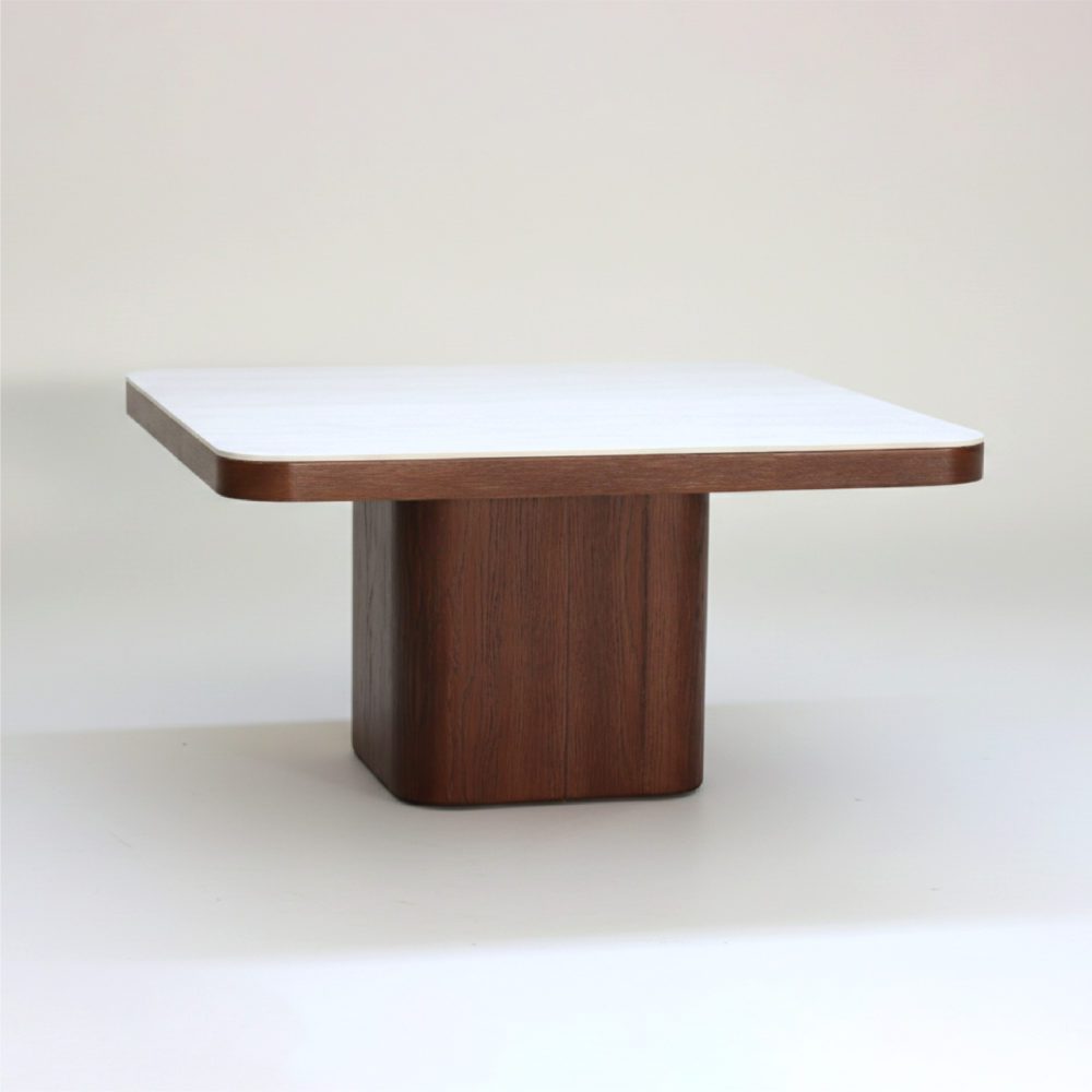 La table basse colonne GM en bois massif noyer et céramique Aventino. Pièce maîtresse au design architectural, cette table basse grand modèle redéfinit les codes du luxe contemporain. Conçue pour ceux qui recherchent un mobilier à la fois imposant et raffiné, elle combine la noblesse du bois de noyer avec la haute technicité de la céramique italienne.