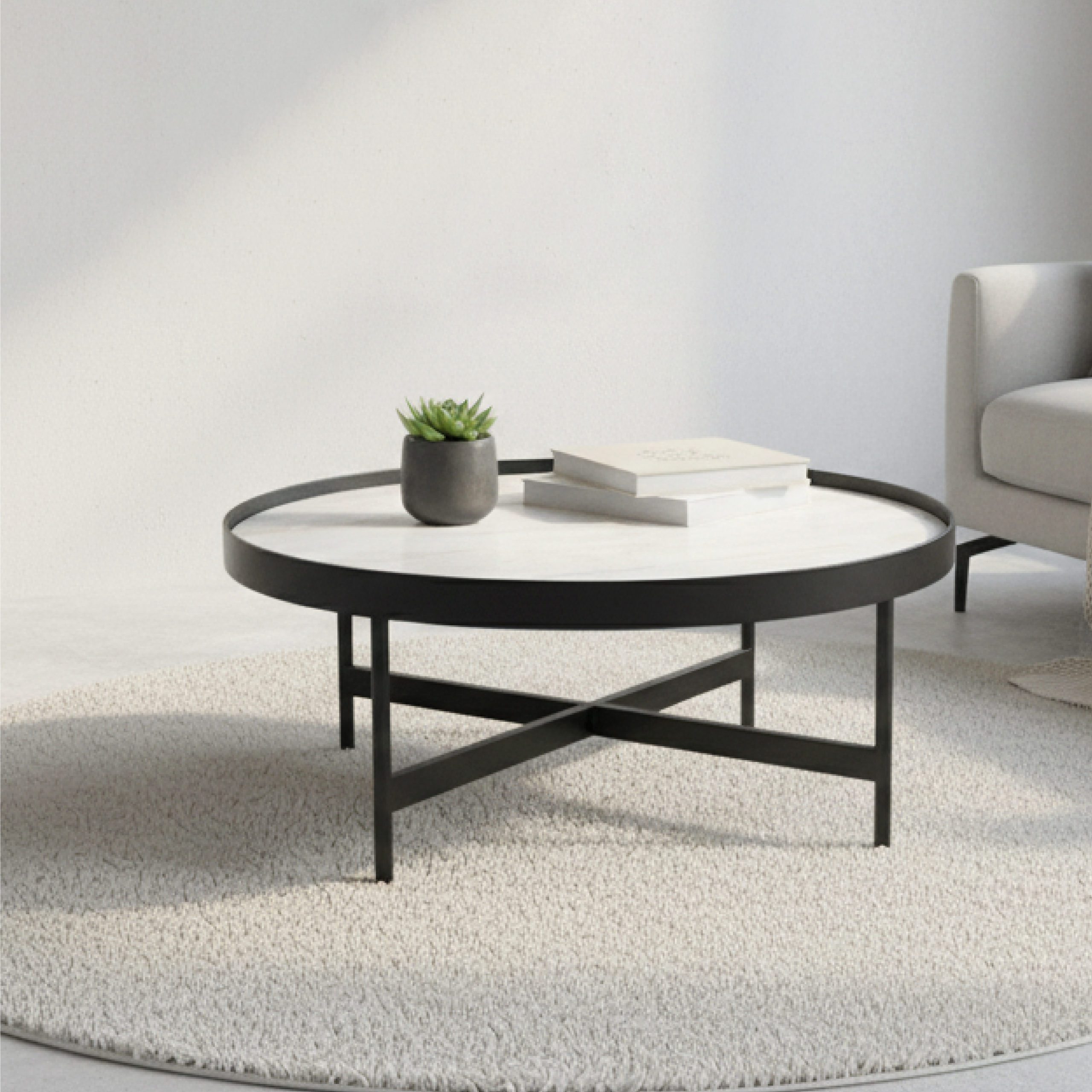 Véritable pièce maîtresse de votre décoration intérieure, la table basse Palma marie avec audace la robustesse industrielle et le raffinement minéral. Son design circulaire, à la fois doux et structuré, apporte une harmonie immédiate à votre espace de vie, qu’il soit d’inspiration moderne, minimaliste ou contemporaine.