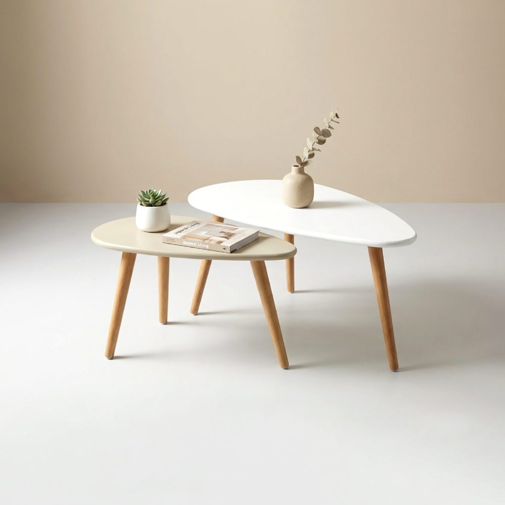 Inspirée par la douceur des formes naturelles, cette table basse scandinave se distingue par ses lignes courbes et son esthétique épurée. Son plateau en forme de goutte d’eau, aux bords arrondis, apporte une fluidité visuelle qui agrandit l’espace tout en instaurant une atmosphère chaleureuse. Les pieds fuselés en bois clair, légèrement inclinés, assurent non seulement une stabilité parfaite mais ajoutent également cette note authentique propre au mobilier de qualité.